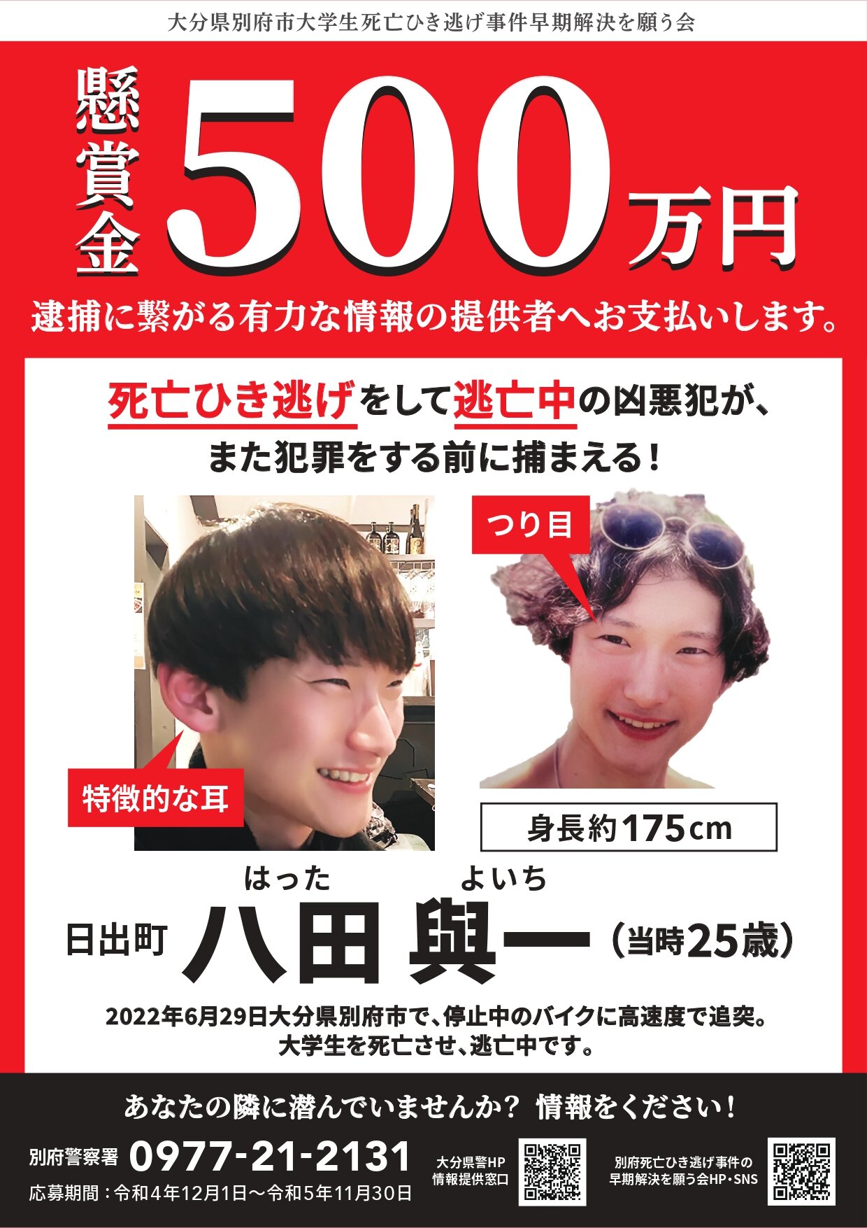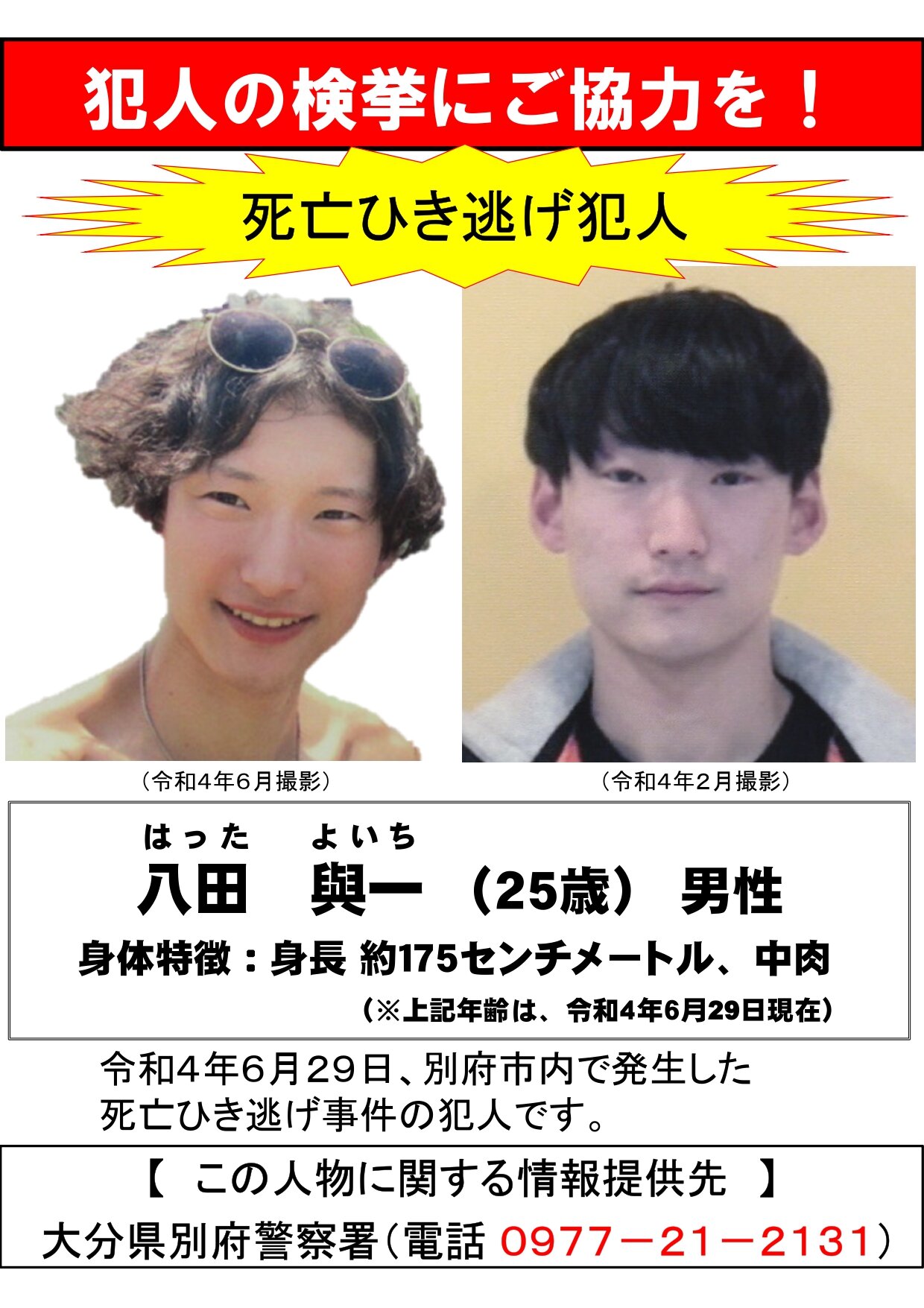 >・大分県杵築市 に土地勘があるということです。 情報提供は別府警察署