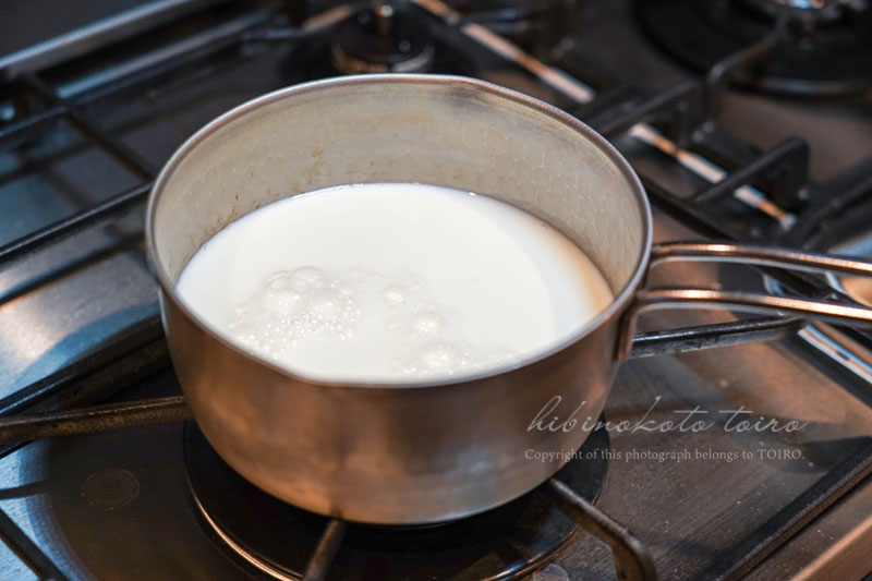 お鍋に牛乳を入れて沸騰直前まであたためて