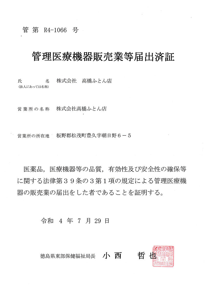 - 管理医療機器販売業等届出済証