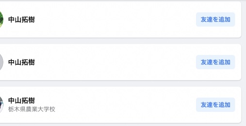 中山拓樹容疑者のFacebookを、検索したところ同姓同名のアカウントが複数表示されました。