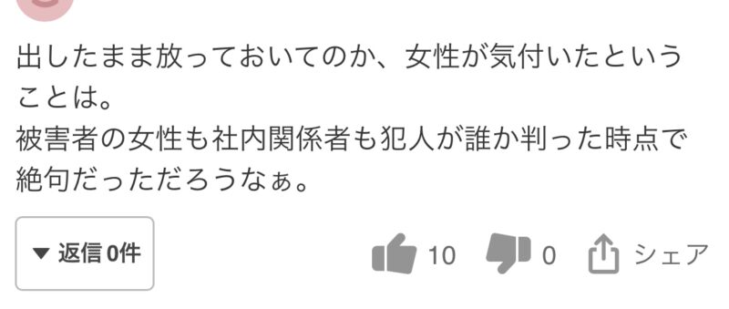 犯人が分かった時は、絶句だっただろうというコメントです。