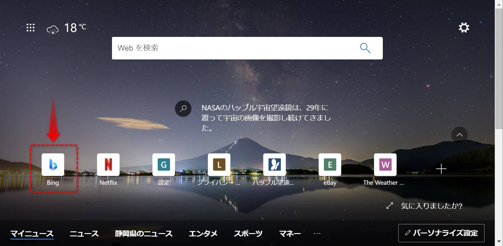 Bingをクリックし、Bingを表示します。