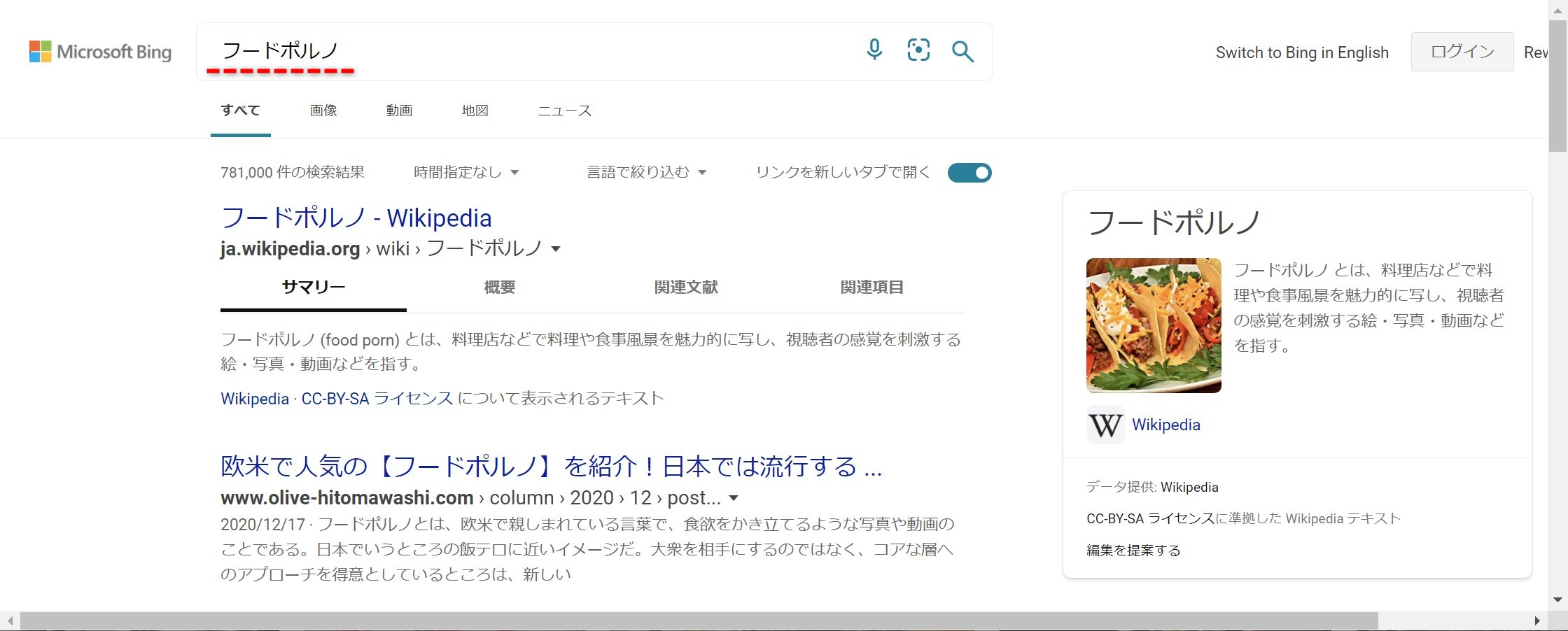 さっそくBingで検索してみます。