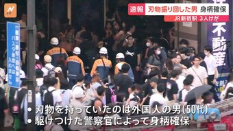 東京・JR新宿駅の電車内に刃物を持った男が現れ、車内やホームは一時パニック状態となりました。男は確保されましたが、この騒ぎで3人がけがをしました。