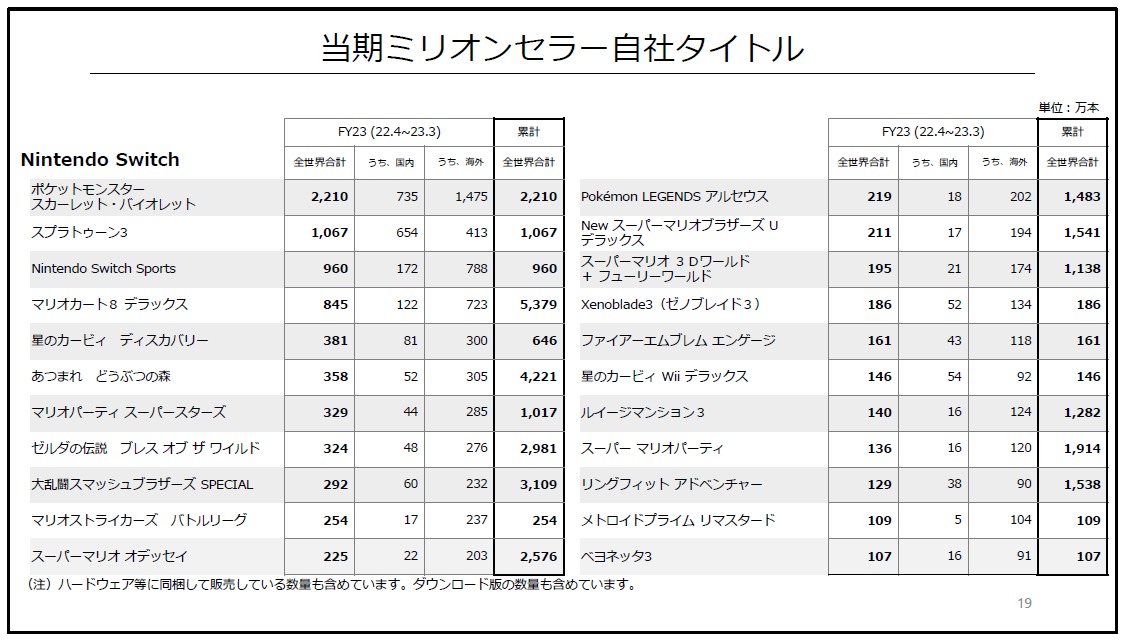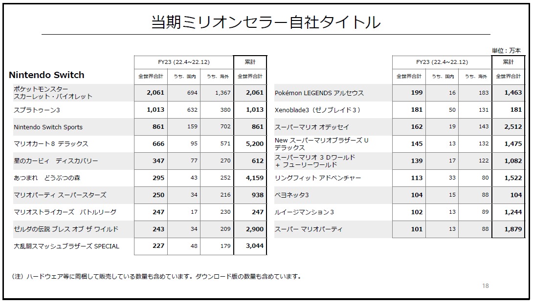 [任天堂: 2023年3月期 決算説明資料(ノート付) / 同第3四半期決算説明資料(ノート付)](pdf)