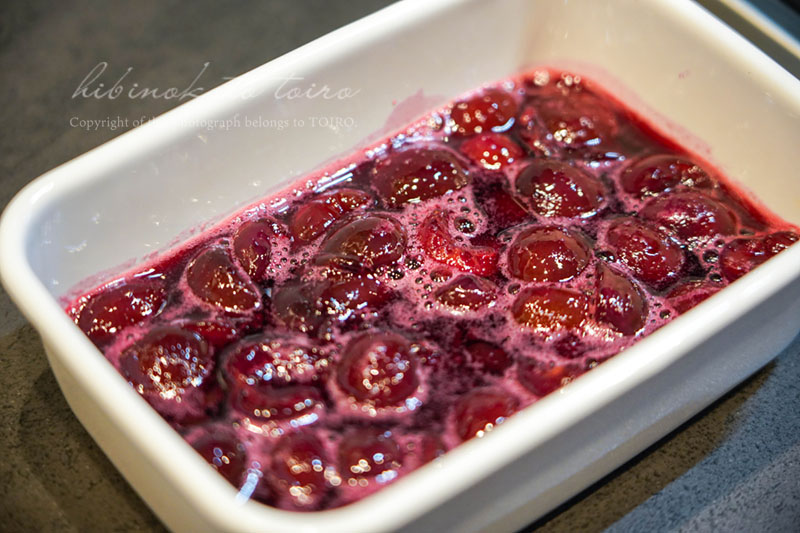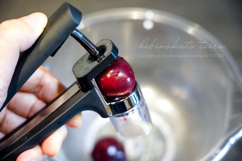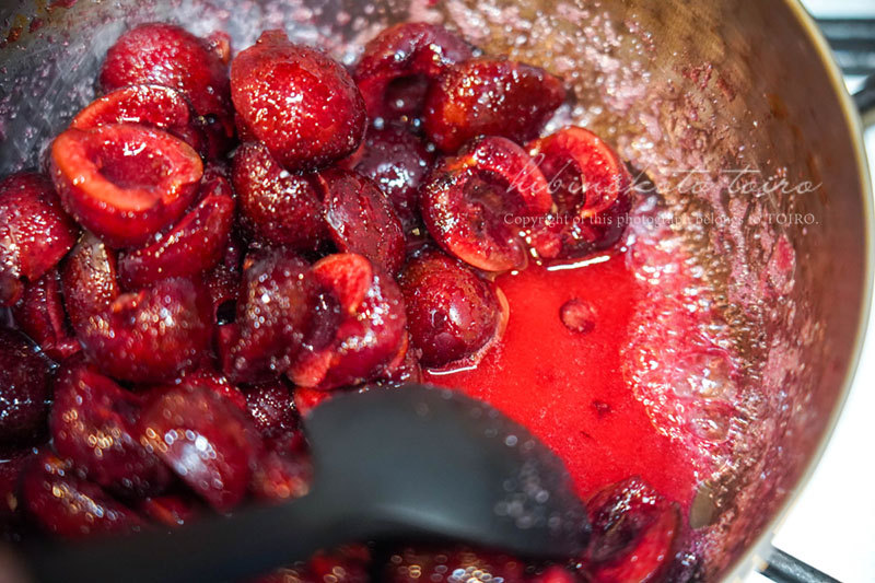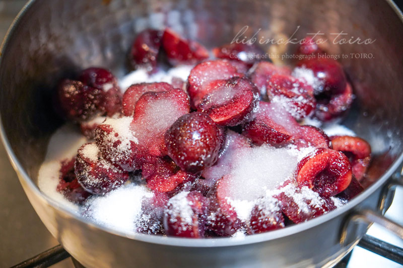 チェリーの重量の30%のグラニュー糖も入れました。