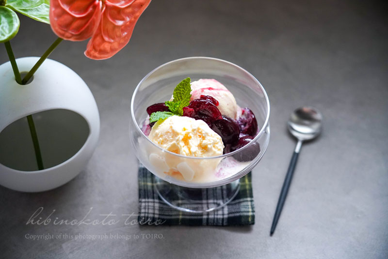 しっかり食感のあるアメリカンチェリーだから、アイスと一緒に食べると楽しい!!