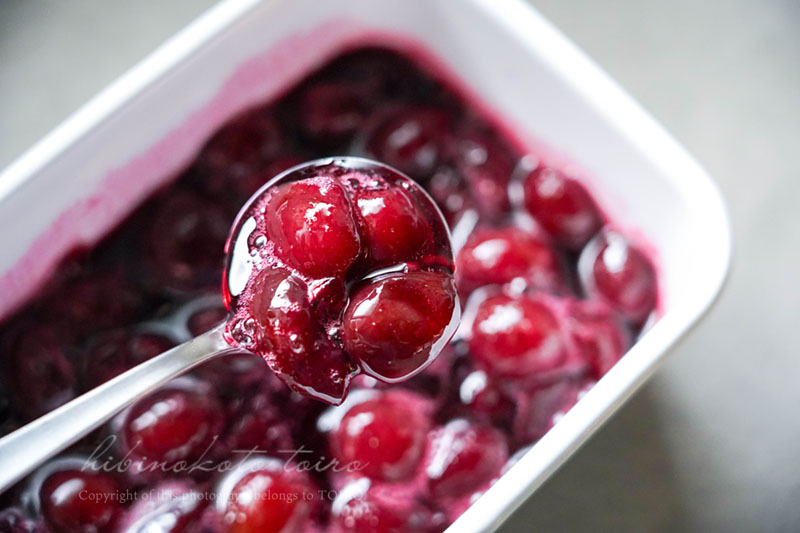 果肉もしっかり楽しめる、濃い紫色のアメリカンチェリーソース♪
