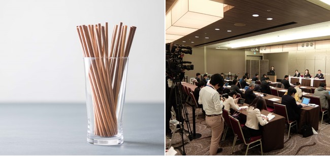 ドラマ内では当時の木のストロー完成発表記者会見の様子も忠実に再現され、関係者の期待感やメディア各社の関心度などがリアルに映し出されております。(写真右…2018年12月11日に開催された実際の記者会見の様子)