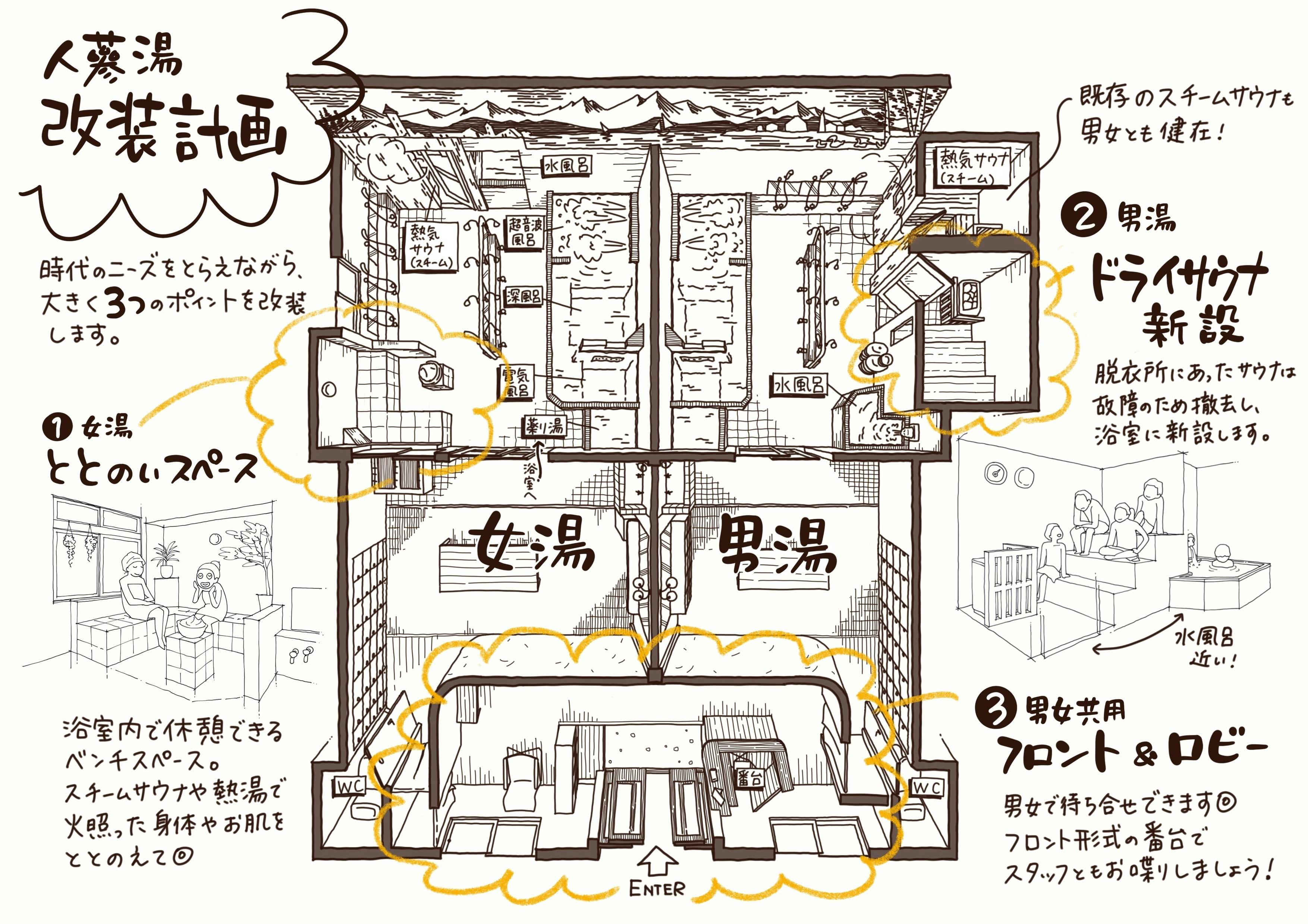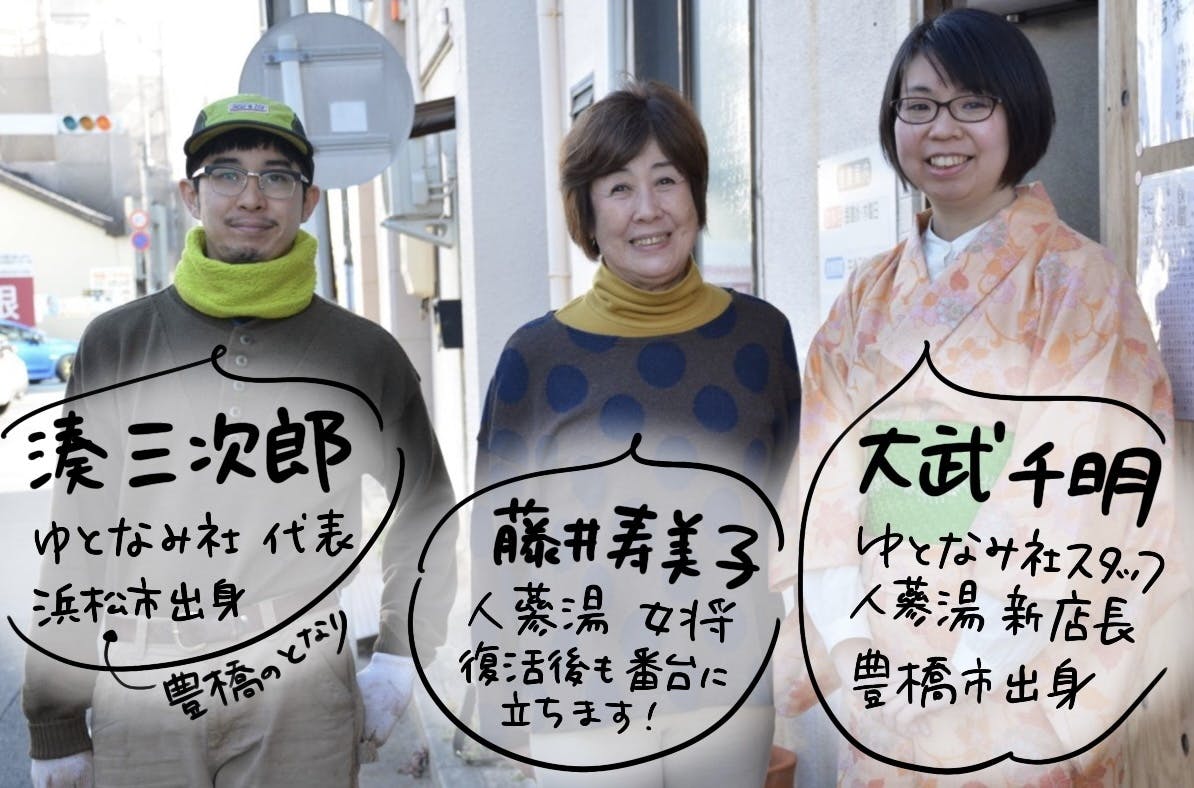 そしてこの度、愛知県豊橋市の「人蔘湯」を継業することになりました。地元出身スタッフを中心に、女将さんの協力を得ながらプロジェクトを進めています。