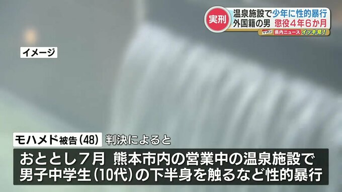 判決によりますとモハメド被告は2021年7月、熊本市内にある営業中の温泉施設で10代の男子中学生に対し、下半身を触るなどの性的暴行を加えたものです。