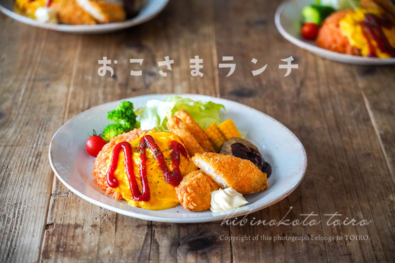 今日のお昼は、ちょっとだけ頑張って(と言っても難しいことはしていない)おこさまランチを作りました!