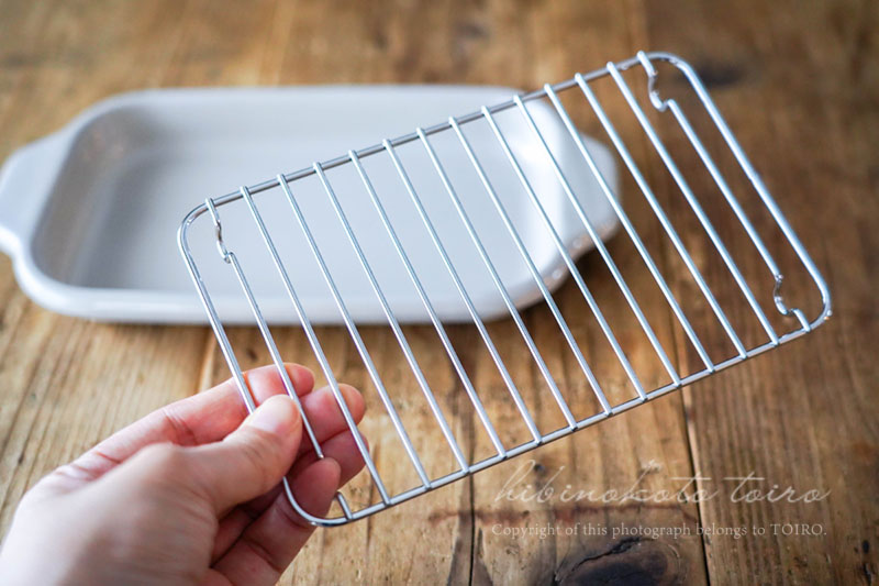 網があるので、油切りはもちろん、お菓子作りの際に粗熱をとるのに使ったりも出来ちゃいます。