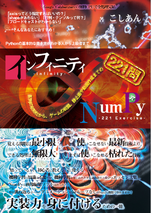1~2ヶ月ぐらいかけてNumPyの基礎~実装力をつけるための本を書きました。問題演習形式で221問収録してあります。