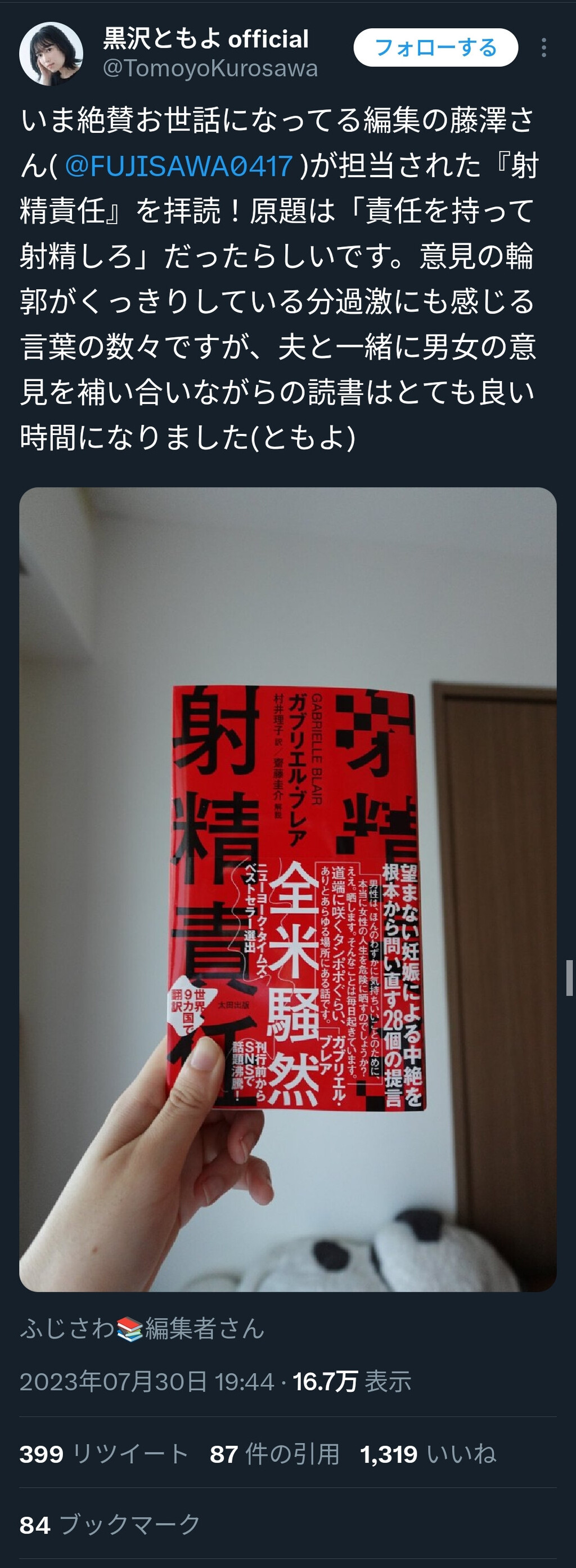 ------------------------------------------------黒沢ともよ「射精に責任を感じてるか男よ?」m9( ゜ω゜)