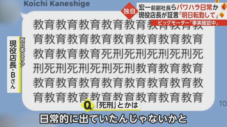 一方で「教育教育教育、死刑死刑死刑」と、教育・死刑などの言葉を連呼するLINE上でのパワハラ書き込みを行っていたことが明らかになっている。
