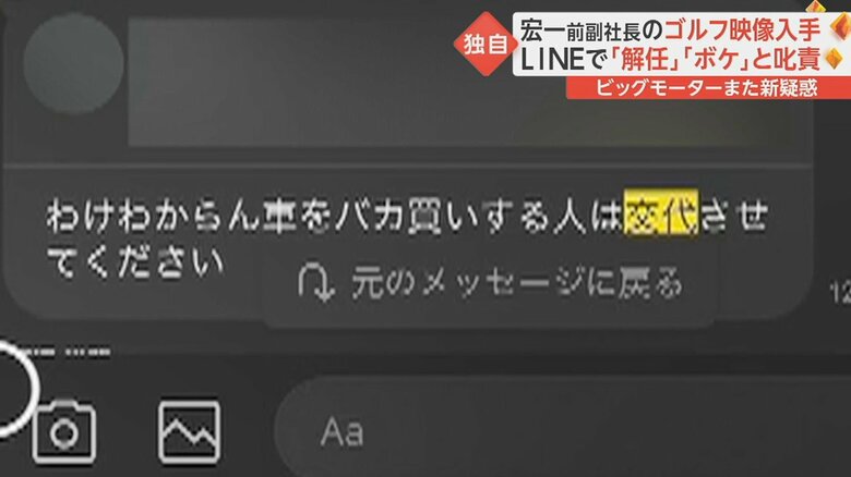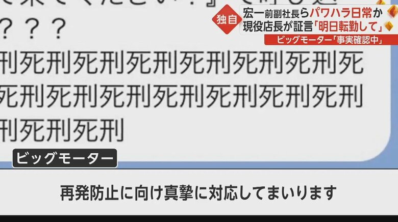 LINEなどを通じ、宏一前副社長が行っていたとされるパワハラについて、ビッグモーター側に事実関係の確認を求めたところ、次のような回答があった。