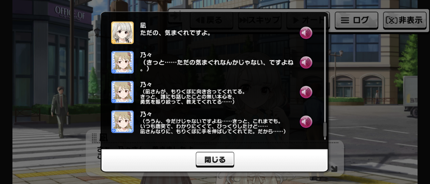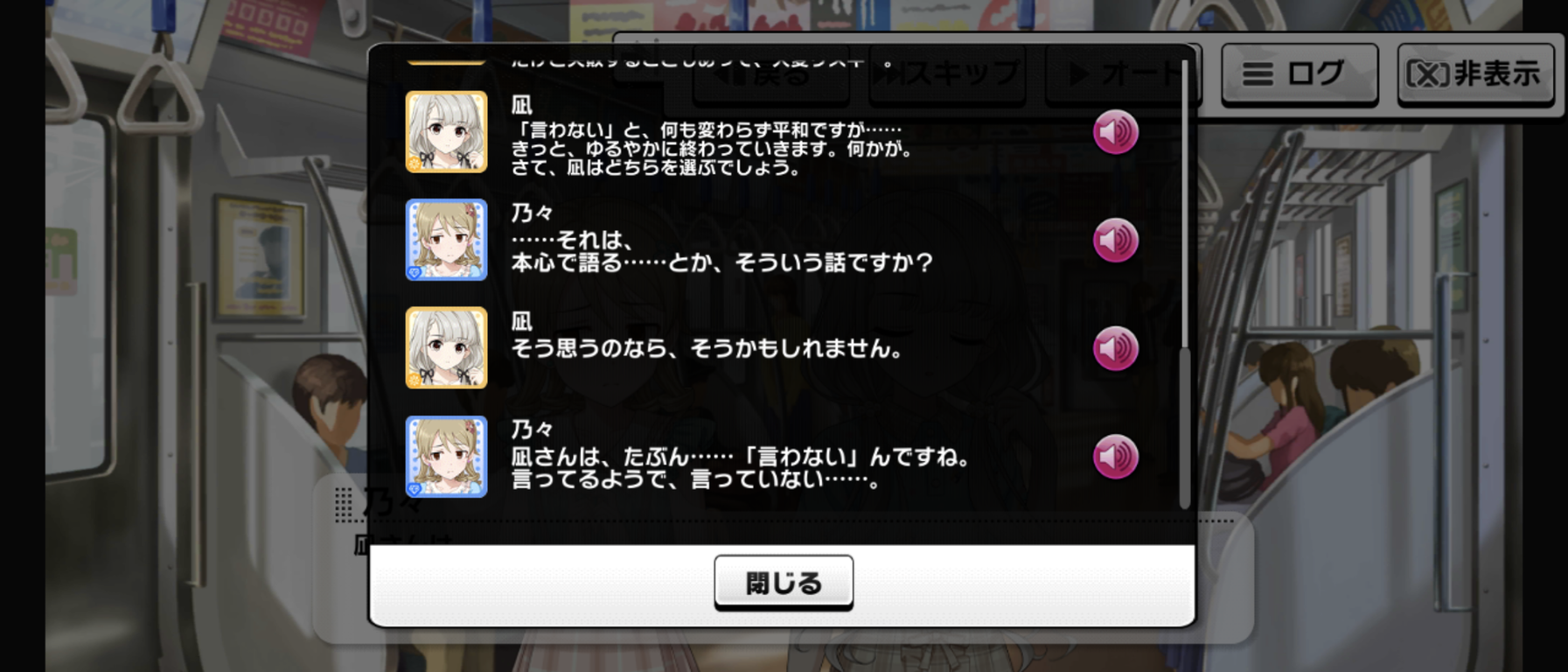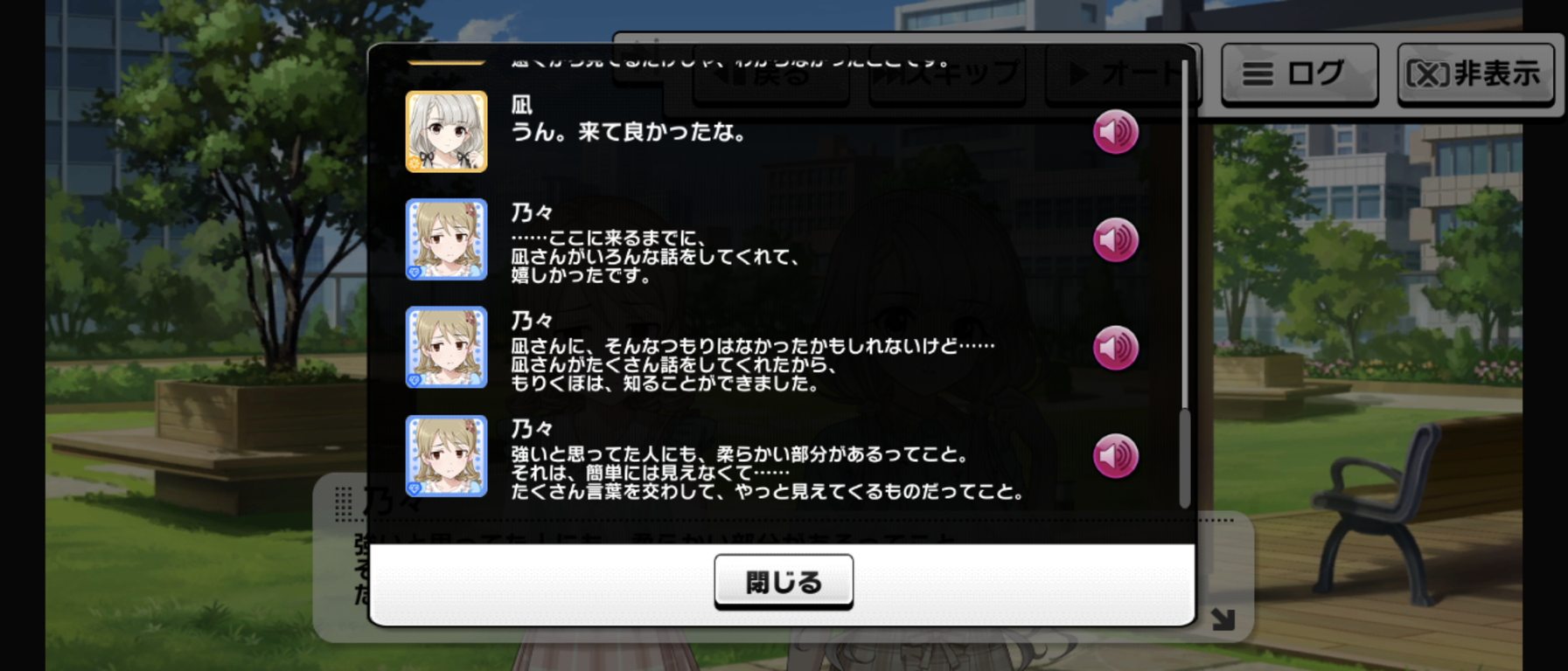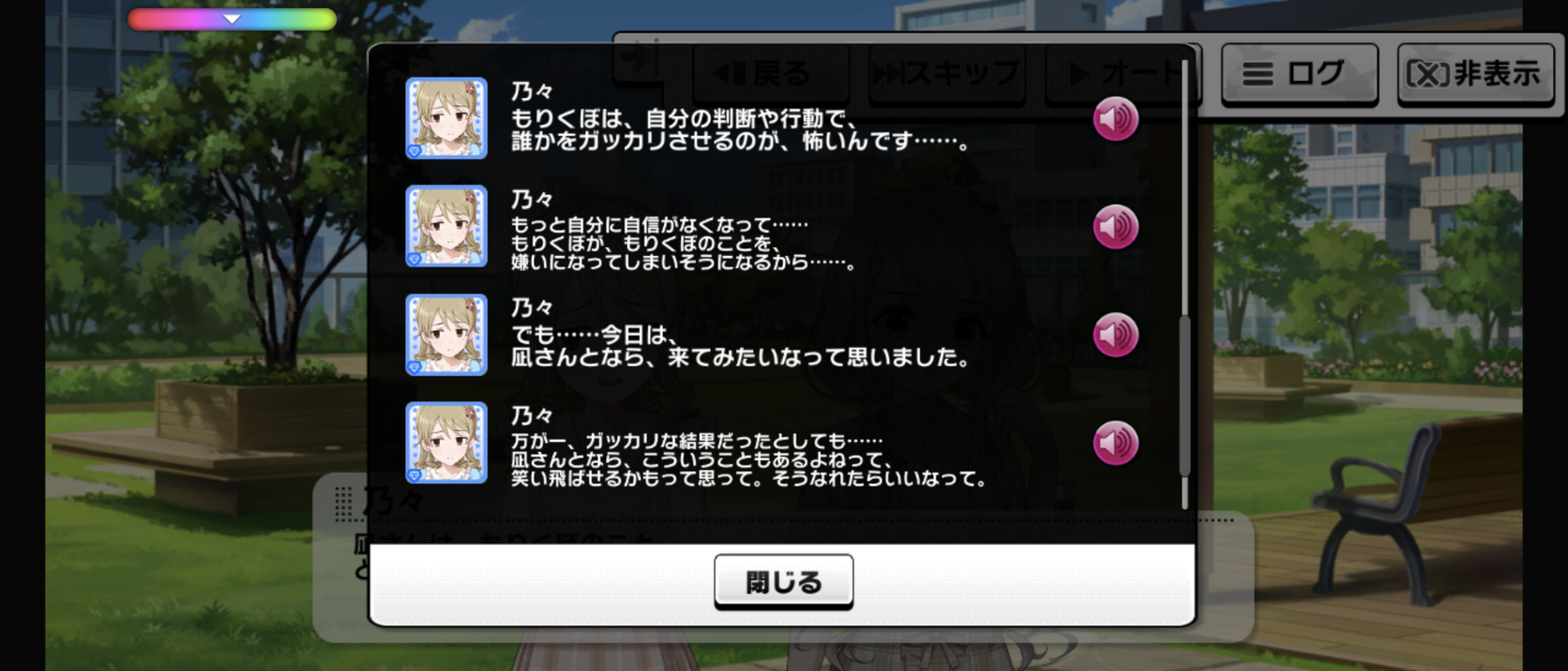 毎度だけどイベント中だけ凪が何かようわからんものに動かされてる感じ、嫌いなんだよな舞台装置みたいで。凪のこの原動力は一体なんなんだよ。マイペース設定どこいったんだよってくらいグイグイ他人に絡んでいくよな