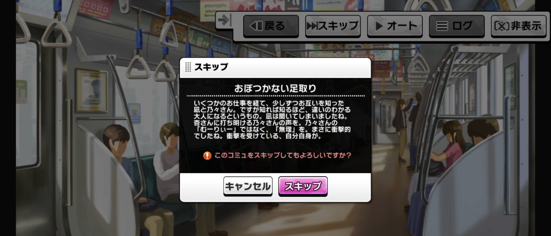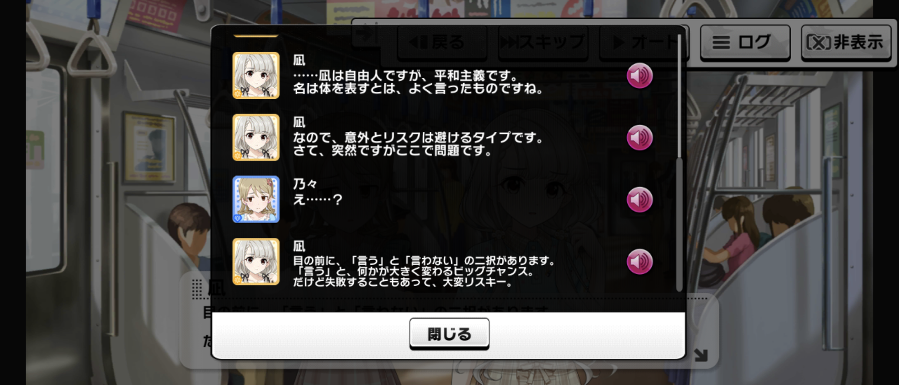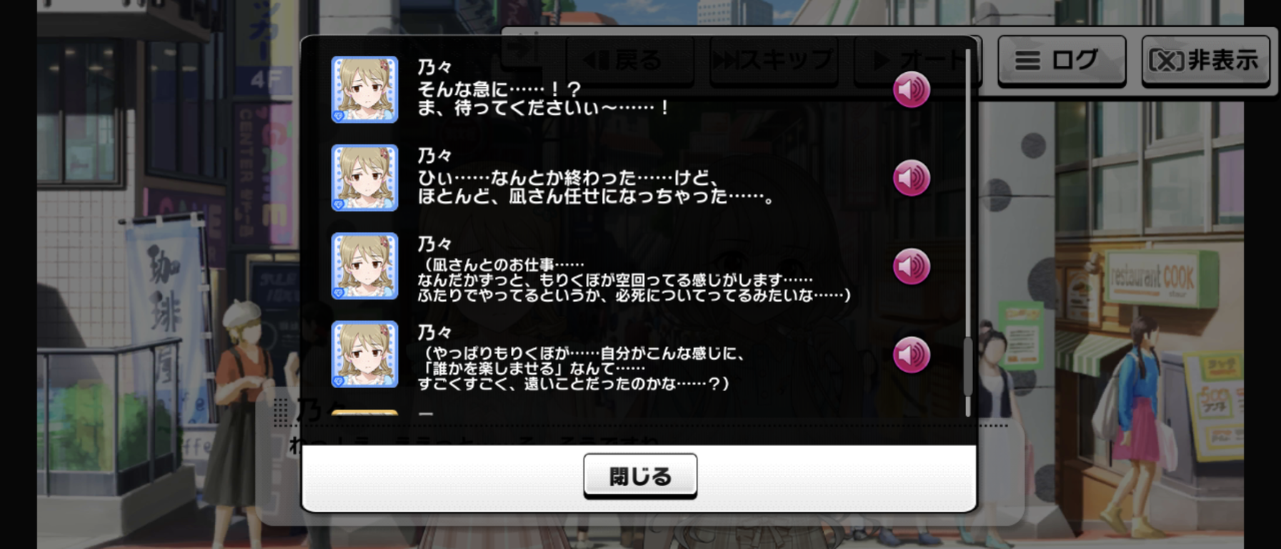 毎度だけどイベント中だけ凪が何かようわからんものに動かされてる感じ、嫌いなんだよな舞台装置みたいで。凪のこの原動力は一体なんなんだよ。マイペース設定どこいったんだよってくらいグイグイ他人に絡んでいくよな