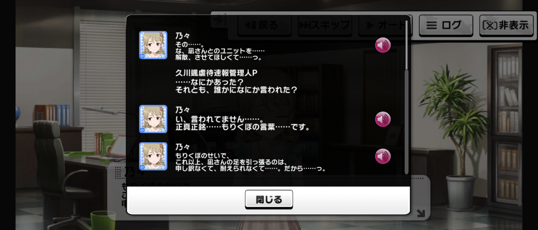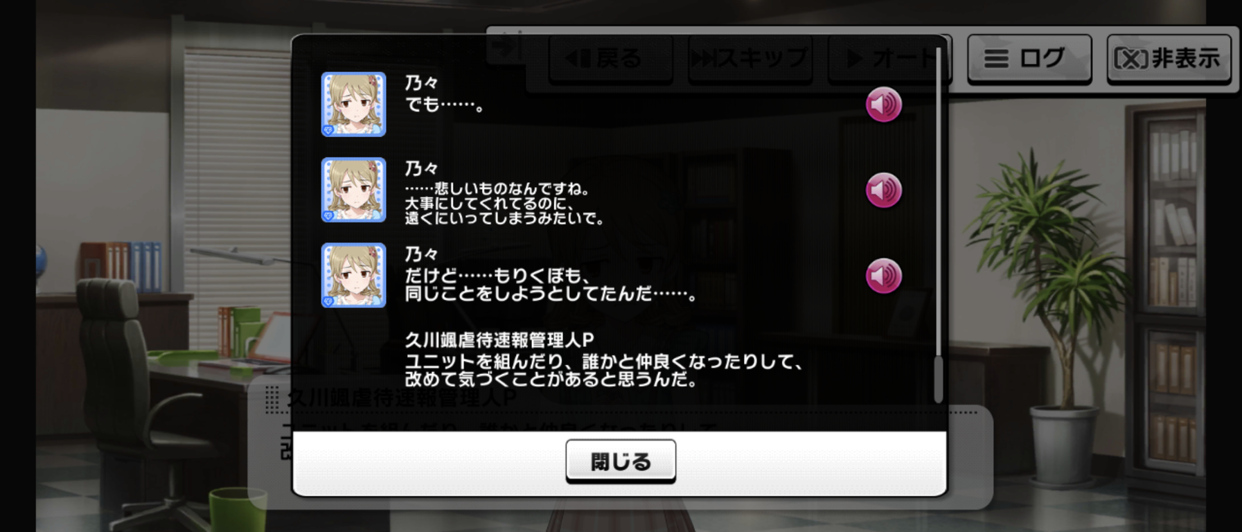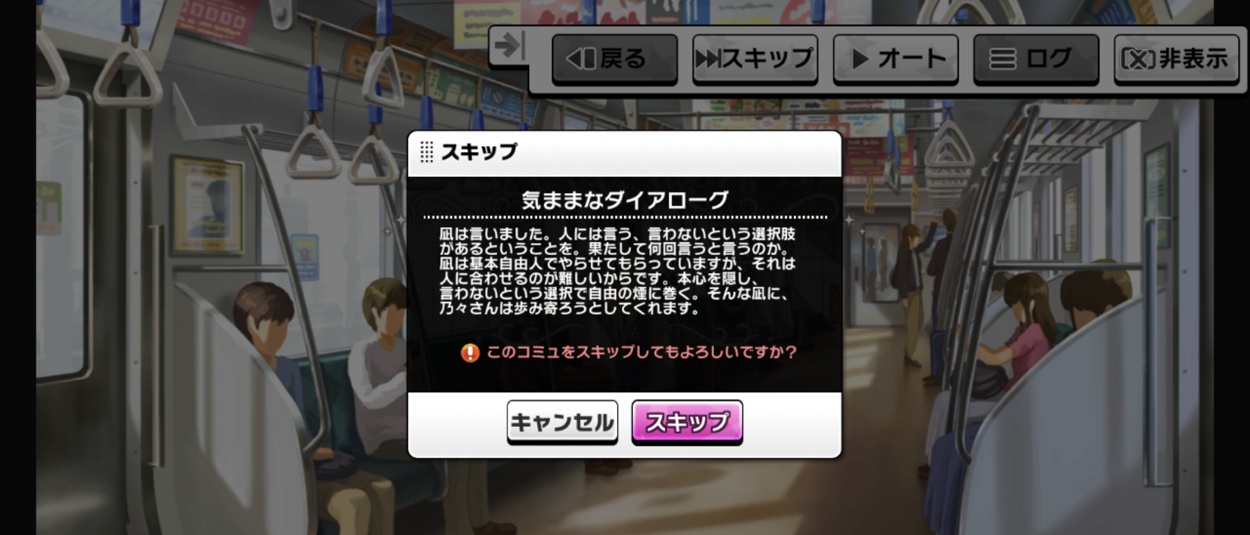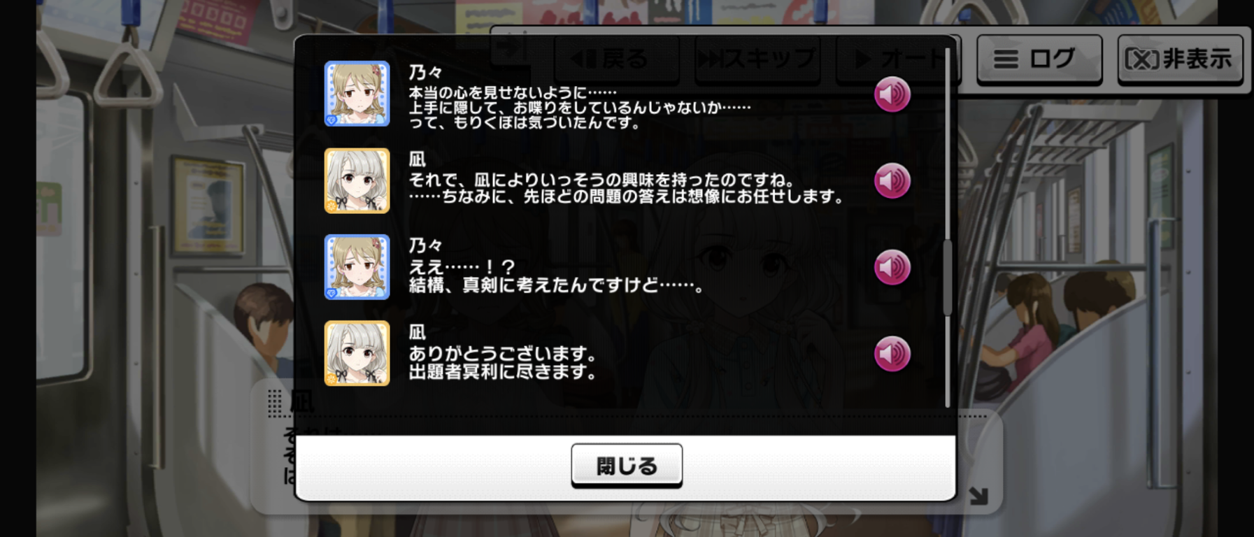 毎度だけどイベント中だけ凪が何かようわからんものに動かされてる感じ、嫌いなんだよな舞台装置みたいで。凪のこの原動力は一体なんなんだよ。マイペース設定どこいったんだよってくらいグイグイ他人に絡んでいくよな