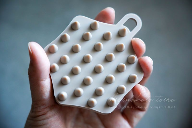 シリコン樹脂製で、硬すぎないし柔すぎないし、ちょうどいい感じ。