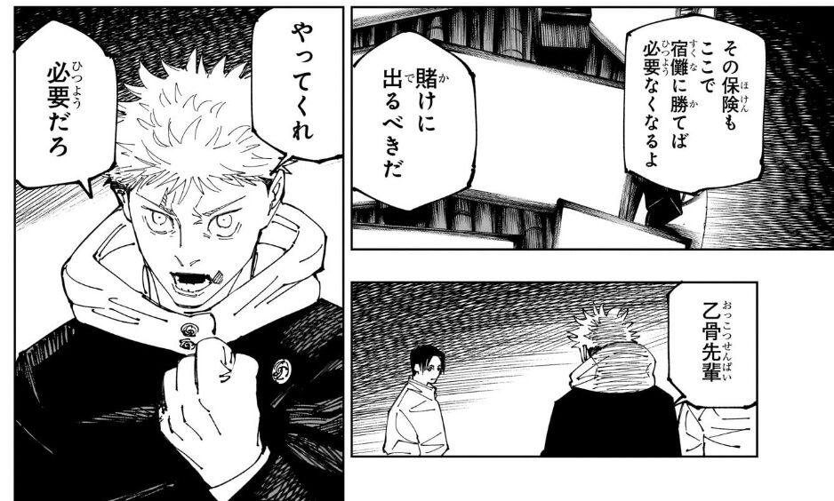 今の宿儺相手に乙骨秤真希で挑んだところで山爺に燃やされたバズビーやエスノトみたいに瞬殺されて終わるだけだから