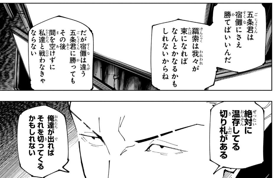 じゃあ出来るだけ早く五条に余力のあるのうちに切り札出させた方が有利じゃねーか