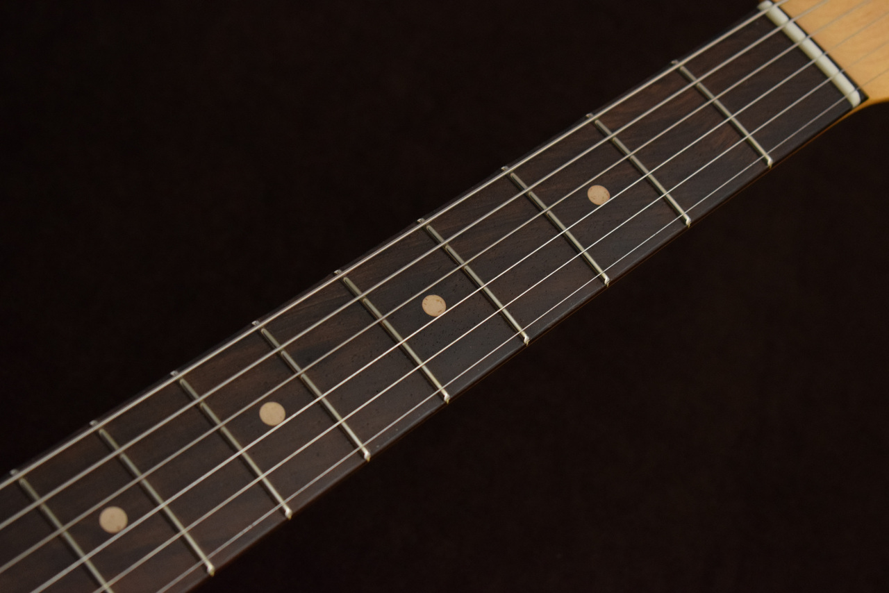 1970年代から最高品質のギターを製作し続けてきた日本屈指のギター工房“Professional Guitar Manufacture[PGM]”。Vanzandtギターは、ヴィンテージサウンドと現代的な使用感を持ち合わせた“Neo Vintage”をコンセプトにしたこだわりの設計を用い、PGMにて丁寧にハンドメイドされます。引き締まったネックの鳴りを実現する“メインコンダクト・ネック”やヴィンテージフェンダーに用いられるものに近いニトロセルロースを用いた極薄のオールラッカーフィニッシュなど、他の工房の追随を許さない技術が詰め込まれたスペックを実現。ひとたび鳴らして見れば、そのヴィンテージライクな深く速いレスポンスに魅了されます。まさしくテキサスサウンドと言えるようなVanzandtならではの輝かしい高音域と深く鳴りながらも引き締まった低域、そして美味しいところを強調したようなコシの強い中域。日本の職人技とテキサスのソウルが融合したVanzandtギターをぜひご堪能ください!