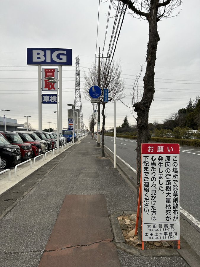 近隣のビッグモーター調べると本気で除草&伐採してるっぽくて草枯れた