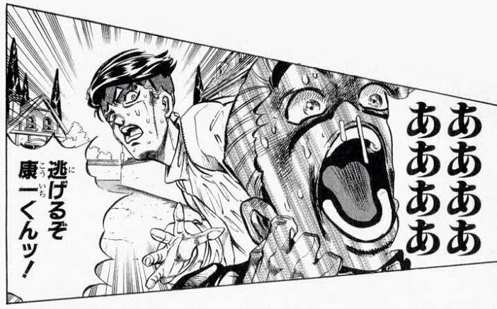 ところがここでオレは奇妙な冒険をしている男と遭遇するッ!!