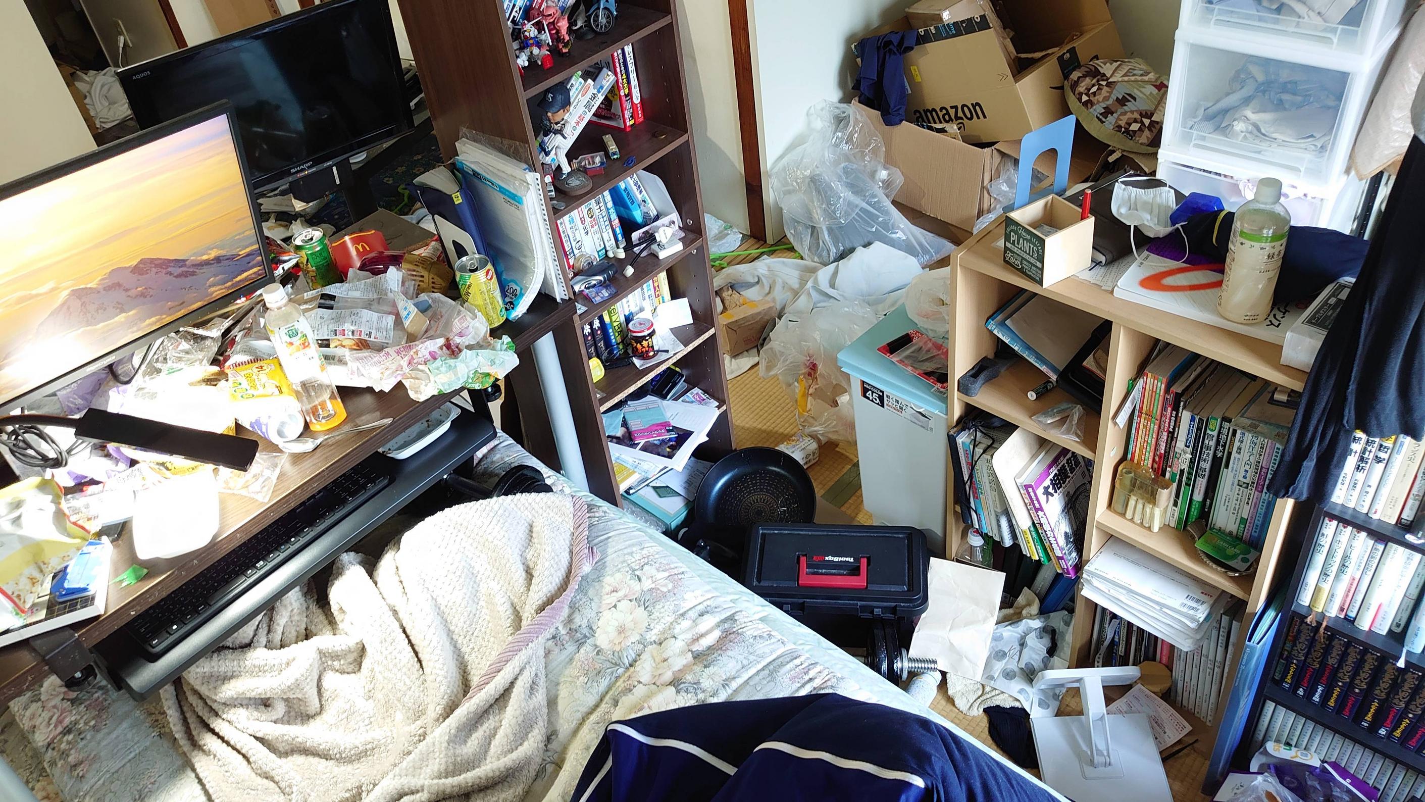 汚部屋住人も匂いはするものはさすがに捨てるが臭くないものが溜まっていくもんや