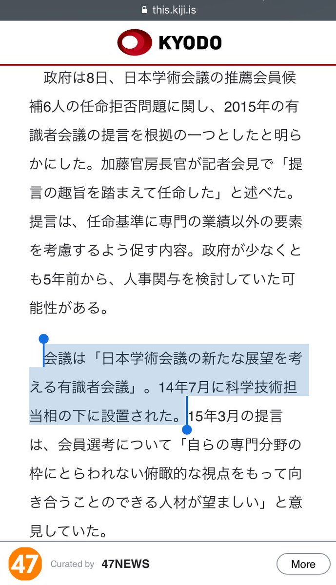 根拠にしたとする「提言」が変わりましたね。前は省庁再編の際の議論(2003年提言)をふまえ、「総合的、俯瞰的な活動を確保する観点から」としていたのに、今度は、2015年提言を根拠に。根拠が変わるということは、本当は、どちらも根拠ではないということでしょう https://this.kiji.is/686876138105095265?c=39546741839462401…