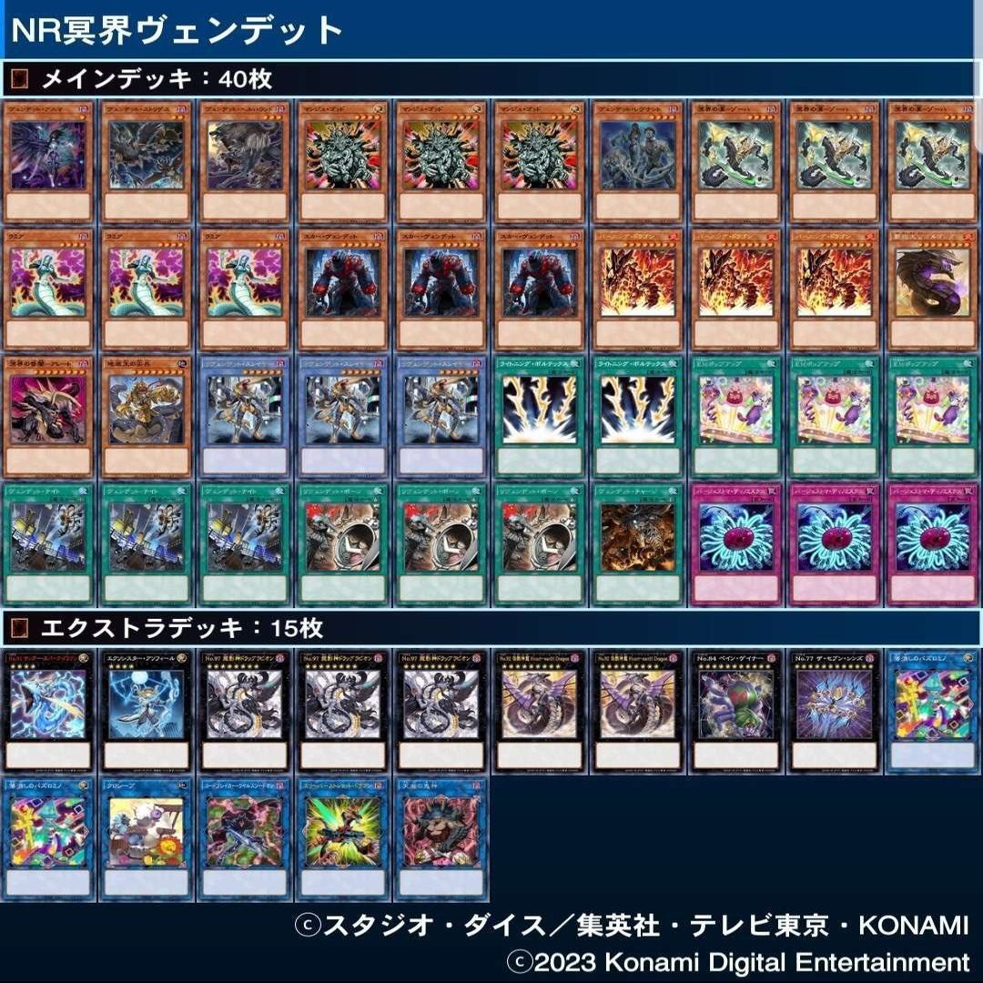 9月22日改訂のNoRichesで《ヴェンデット・チャージ》が制限カードになり、「今までTier1だったヴェンデットデッキも、これでは弱すぎて使用者はいない」とまで言われていましたが、見事優勝しました。凄い。
