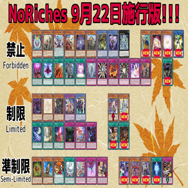 NoRichesは「1枚でデュエルを終わらせてしまうようなメタカード」と「活躍しすぎたデッキ、カード」、「アンケ―トで不人気だったカード」の3つを基準に改訂を行っていると認識しています。