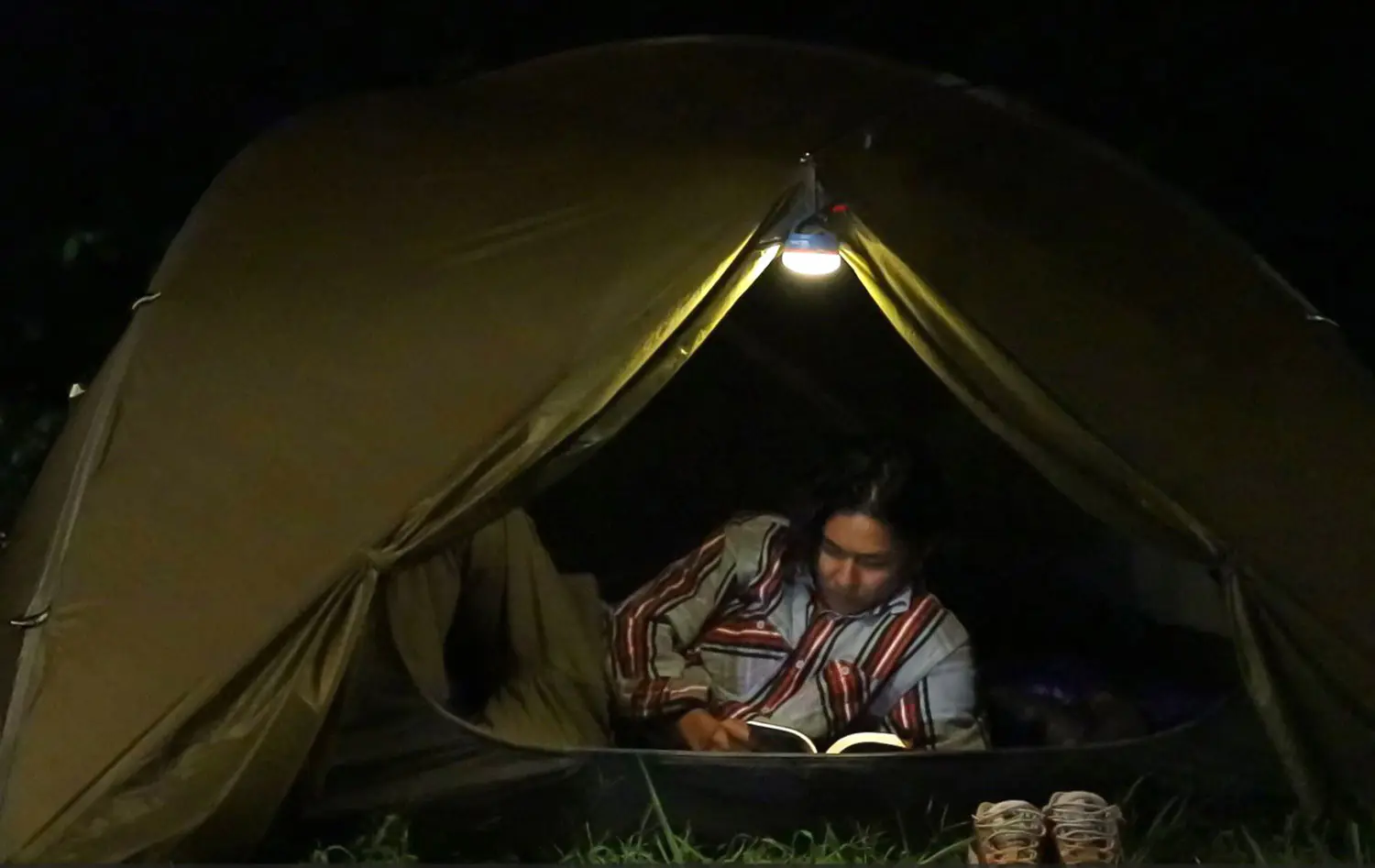 蓄光フードなので、暗いテント内でも場所がわかる!