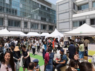 2015年から渋谷区が実行委員会と共同で取り組む「渋谷ごみゼロ大作戦」のうち、ハチ公前広場や宇田川交番前など4カ所に設置するエコステーションで協力するのは、フリマアプリ「ラクマ」を運営する楽天。