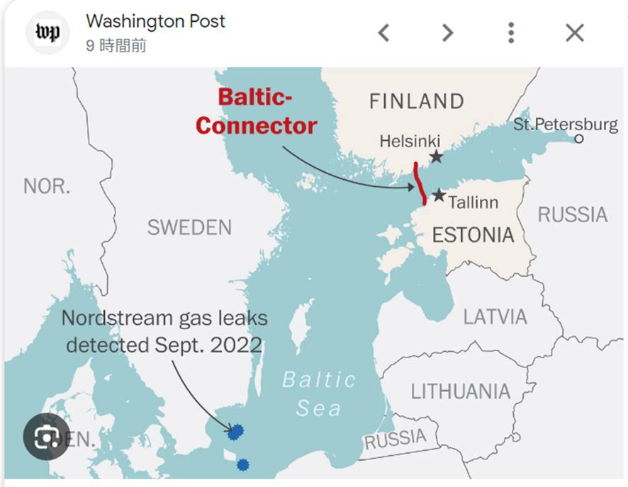 フィンランド警察は20日、同国とエストニアをつなぐ天然ガスの海底パイプラインが損傷した問題で破壊工作が行われた疑いがあるとして、中国船に捜査対象を絞っていると明らかにした。