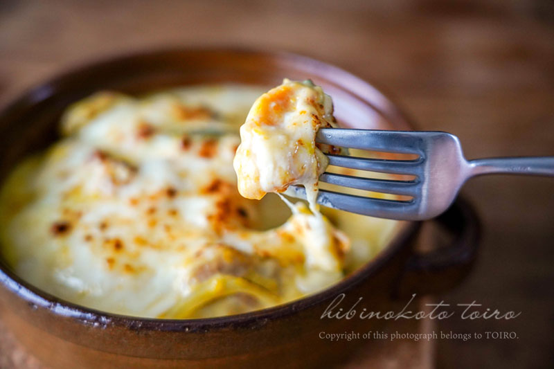 カボチャの溶け出したホワイトソース、これとチーズと一緒に食べるの最高に美味しいです!