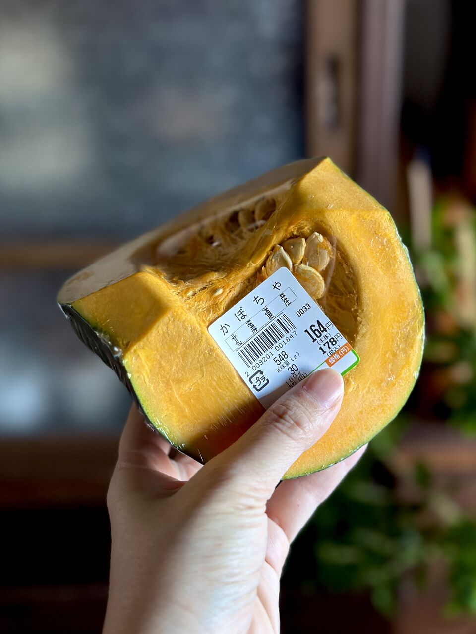 昨日スーパーで広告の品のお得なカボチャを買いました!