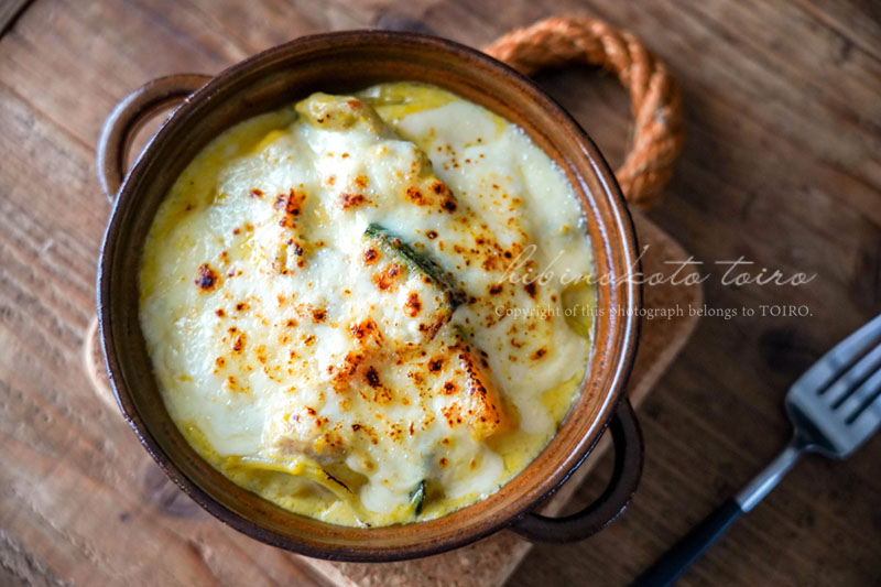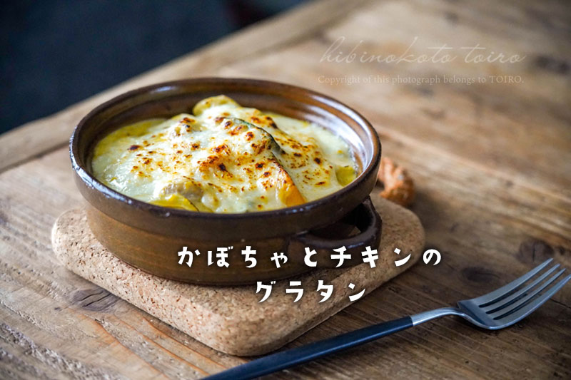カボチャとチキンのグラタンを紹介します。