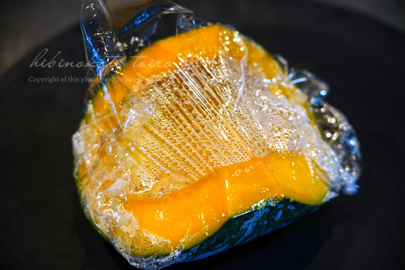 レンジであらかじめカボチャを柔らかくしてるから調理時間が短縮されます!
