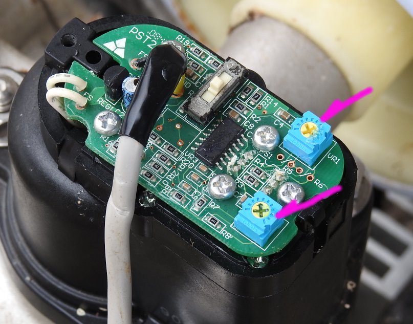 3.VR1を右に回してポンプが止まったところで固定。