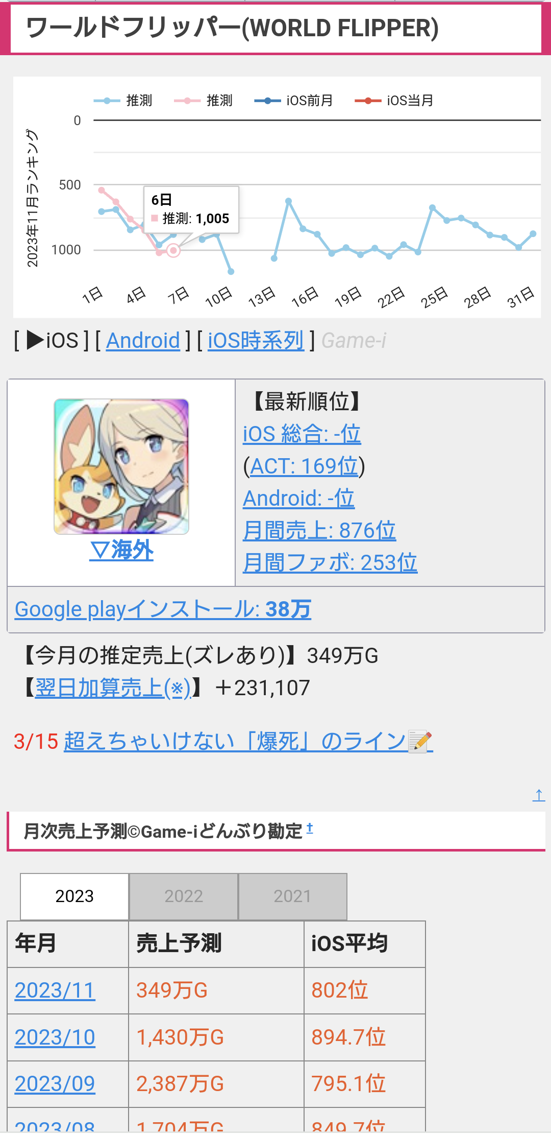 - どこが大人気やねん。キャラ追加されても上がらないのにw