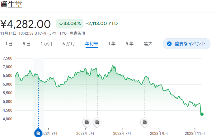 - 資生堂、ストップ安。核汚染水の影響で2800億円ふっ飛ぶwwww