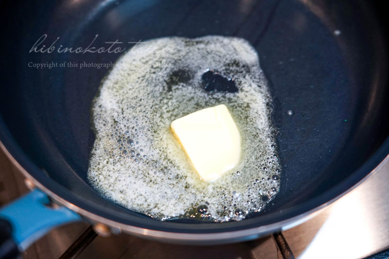 フライパンにバターを乗せて中火で溶かします。