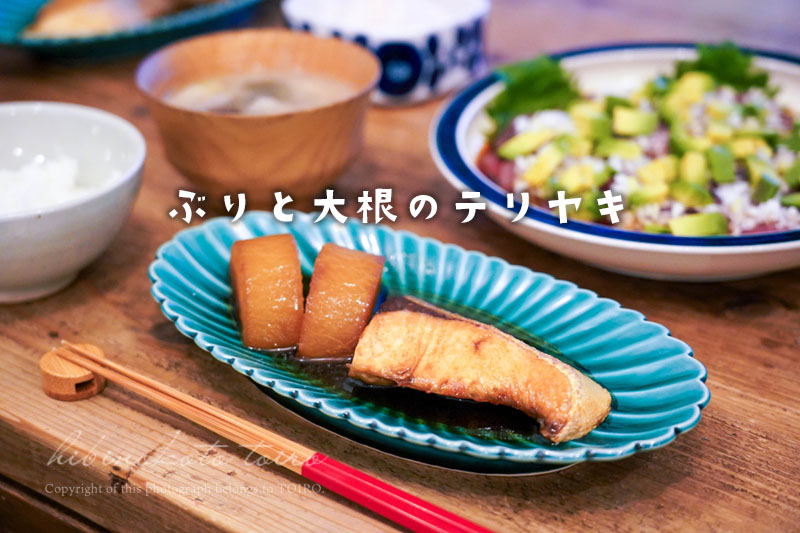 少し前の晩ごはんですが、ブリと大根を照り焼きにしました。