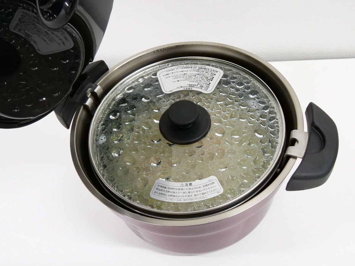 保温容器に入れた直後の調理鍋は、フタの温度が約80℃。