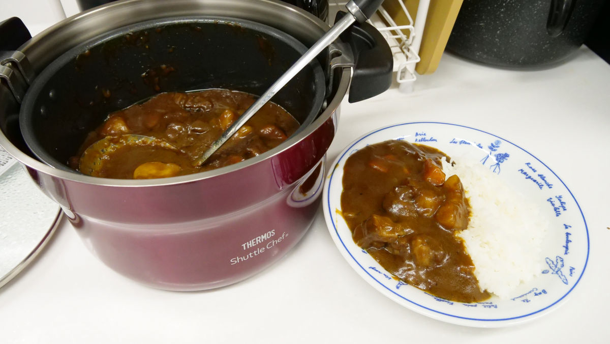 加熱して保温容器に入れておくと余熱調理が行われ鍋の面倒を見なくてもいいサーモスの真空保温調理器「シャトルシェフ」を使ってカレーを作ってみた