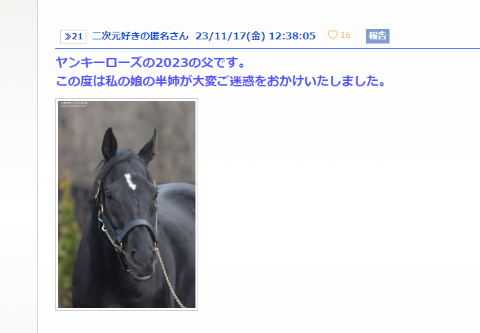 日本競馬のブランドに傷がつくからな… - 22二次元好きの匿名さん23/11/27(月) 20:44:04