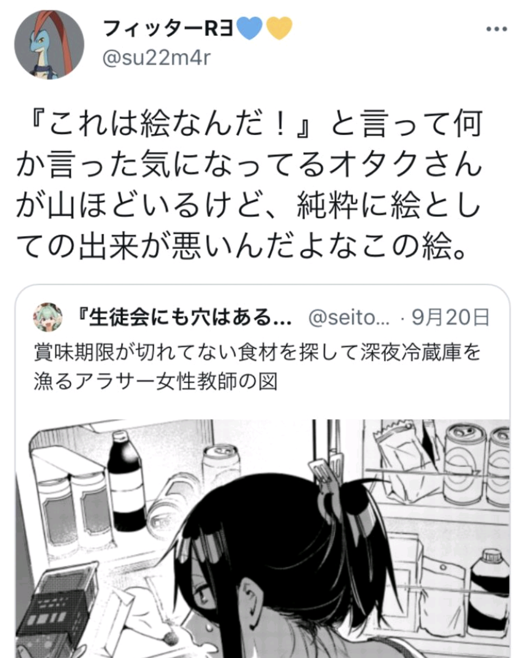 だから「こんなだらしない格好させるな!」って指摘ならわかるけど「こんな女いない!」って指摘は「いや…いる…」としか言えないし、自分の絵は「嫌なら見るな」で済ませるのに他人の絵は「嫌なら見るな」で済ませないのは自分に甘く他人に厳しく単純にかっこ悪い